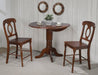Add modern farmhouse style to your home without compromising space or elegance with this classic expandable bistro set. Distressed contemporary chestnut brown is a clean and refreshing color that modernizes the classic silhouette of this counter height table and chair set. Perfect for small dining area, condo or apartment living, this double drop leaf table serves your day-to-day needs yet transforms into extra dining seating when guests drop by. The French provincial inspired dining stools create a casual air for your open concept family room. Mix and match with your choice of Sunset Trading Andrews Collection arm and side chairs, standard height tables, buffets, islands and carts (sold separately) to complete your perfect dining retreat. The superior solid wood craftsmanship is designed to last for generations!