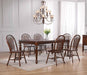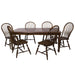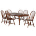 Welcome a touch of French country and traditional American style into your home with this hidden leaf dining set that expands from 56” to 72” to allow seating for up to eight friends and family. The warm chestnut brown wood brings an inviting comfort that will update your kitchen or dining room, ideal for formal and casual dining. Windsor chairs are famous for their uncomplicated and universal design. Constructed from solid eco-friendly Malaysian oak, this farmhouse chic dining set is truly timeless and looks fantastic when paired with other dining room furniture pieces in the Andrews Collection.