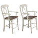 Sunset Trading Andrews Napoleon Barstool with Arms | Antique White with Chestnut Brown Seat | Counter Height Stool | Set of 2