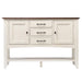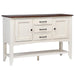Traditional, farmhouse, mission and more our sideboard buffet has it all. This transitional credenza delivers rustic charm while providing organization in your kitchen, office, entryway or home bar. Ideal storage and display solution with three spacious drawers, two closed door cabinets and a large open shelf for baskets, books, dishes and serving plates. Perfect for your before, during and after dinner party needs. Mix and match with any Andrews dining piece to create your perfect space!