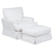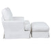 From California to the Carolinas, any zip code in between, Sunset Trading Ariana Slipcovered furniture collection will complement your beach, urban or industrial farmhouse theme. A contemporary alternative to traditional rolled or modern track arm, the flared arm gives this den seating set, which includes matching chair and ottoman, a welcoming charm.