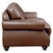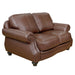 Update your home with this traditional leather loveseat. This comfortable seating will turn your living room into a luxurious place to kick back and watch a movie or visit with friends, yet still give a classic vibe. Cushions are soft and help for back support. The padded, rolled arms adorned with brass nail heads create a contemporary feel that will give any room an elegant look. Sofa and club chair are sold individually or as a relaxing living room set. We hope you love this accent chair as much as we do!