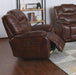 With its perfect blend of traditional, Chesterfield-inspired style and modern power motion, the Diamond Power Living Room Collection by Sunset Trading is urban, inviting and on trend. Pillow top arms and luxury hand bag replicated diamond tufted accents bring out the contemporary side of the power recliners. Infinite comfort positions are offered by the smooth operating, power reclining mechanism, with power buttons equipped with a USB port to charge your devices and a home button to return to original position. It sports leather gel moisture resistant upholstery in a versatile dark brown with authentic leather variations in the hue, at a fraction of the cost of genuine leather. Crafted with a solid wood frame and generously padded with high density foam, supported by pocket coils to ensure lasting durability. Pieces are sold individually or as a relaxing living room set. Look no further, your ultimate seating experience is just a click away!