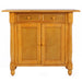 Enhance the beauty and warmth of your kitchen while extending your work surface, dining and storage space with this finely hand crafted Drop Leaf Island Set that matches with any Sunset Trading Oak Selections dining piece. This transitional seating is perfect for preparing family meals or serving drinks and appetizers when entertaining guests. The drop leaf instantly converts this island into a breakfast bar perfect for quick meals or casual entertaining, accommodating two barstools when open. Paired with coordinating bar stools, this classic drop leaf bar set will be sure to complement your kitchen decor and provide a welcome gathering place for your family and friends for years to come!