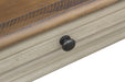 Farmhouse charm with an island vibe, this minimalist desk will add coastal living style to your lake house, country home or high rise. The antique white will brighten your study room while the walnut will blend with your traditional decor. Perfect size laptop, writing desk or makeup table if you do not have much space to waste and a few things to store. Designed with small space living in mind, this narrow desk with authentic wood planks and bun feet ground this home office desk with contemporary style. Like the surf hitting the sand, have one room flow into the other, create a curated look with matching bedroom furniture and living room tables.