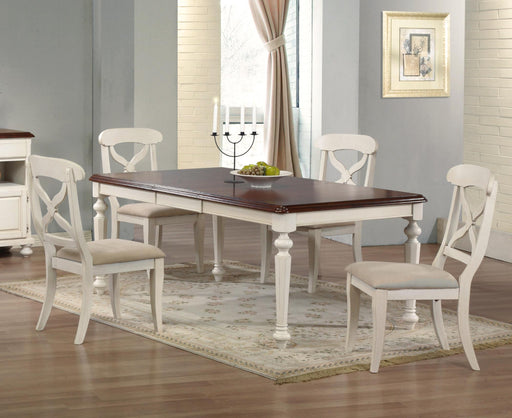 Sunset Trading Andrews 5 Piece 76" Rectangular Butterfly Extendable Dining Set | Antique White and Chestnut Brown | Seats 8