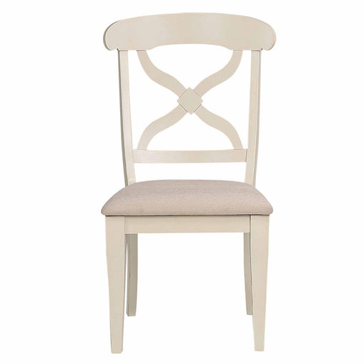 Sunset Trading Andrews Cross Back Upholstered Dining Side Chair | Antique White Solid Wood | Set of 2