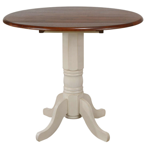 Sunset Trading Andrews 42" Round Extendable Drop Leaf Pub Table | Antique White with Chestnut Brown Top | Seats 4