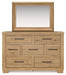 View full detailsThis dresser with mirror expertly refines the raw beauty of wood, bringing a rustic vibe to urban contemporary design. Natural details on the wood,...