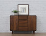 Minimalist credenza with a streamlined relaxing look equally appropriate for your dining room, living room, office or bedroom storage. Cool 70’s inspired Scandinavian retro design that will withstand daily wear and bring you back to a simpler time. Iconic mid-century modern splayed legs and no see handles provide understated impressive style. Four drawers and two cabinets are ideal for smart organization with enough space for mess-clearing before guests arrive. Constructed from sustainably sourced FSC Certified Malaysian Oak, get the contemporary vibe you want without harming the environment. This chic sideboard looks awesome when paired with other dining room furniture pieces in the Mid-Century Collection.
