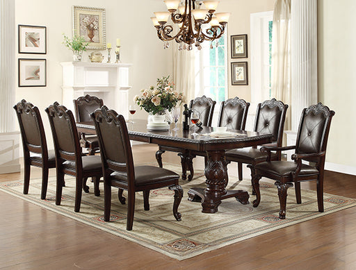 Crown Mark Kiera Double Pedestal Dining Table in Rich Brown
