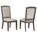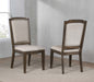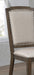 From the California mountains to the Carolina coast, any urban dwelling or farmhouse in between, this set of two chairs adds country charm with a traditional design. The combination of natural color upholstery with bronze nail head supported by solid distressed dark rubberwood will add sophistication to any dining room or kitchen. Look towards the hues in draperies and rugs for complimentary upholstery furniture to showcase. Coordinate your dining ensemble with any Sunset Trading Cali Dining Collection furniture, including matching sideboard, dining bench and extension table.
