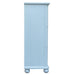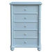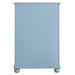 Vertical planks, replicating shiplap wainscot, combined with horizontal closed shutter doors, will wrap your bedroom with cozy country cottage charm. Contemporary lines united with authentic seagrass baskets, beadboard panel, traditional turned ball feet and finials create transitional farmhouse and island appeal. Perfect choice for your gender neutral bedroom, this will make your girl, boy, guest or teen bedroom ideas come to life with a pop of color and delight. The ocean blue finish feels as good as it looks, durable yet smooth to the touch. Individual pieces available separately or as a configurable bedroom set.