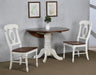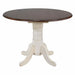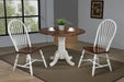Add cozy cottage farmhouse charm to your home without compromising space or style. Distressed off white and chestnut brown is a clean and refreshing combo that modernizes the classic silhouette of this solid wood expanding dining table. Perfect for small dining area, condo or apartment living, this double drop leaf table serves your day-to-day needs yet transforms into extra dining space when guests drop by. Mix and match with your choice of Sunset Trading Andrews Collection arm and side chairs, buffet, china cabinet, kitchen islands, carts and home bar furniture (sold separately) to complete your perfect dining retreat. The superior solid wood craftsmanship is designed to last for generations!