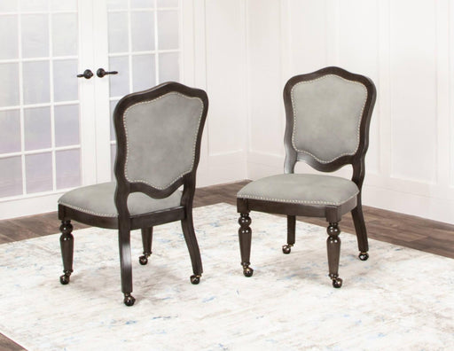 Sunset Trading Vegas Gaming and Dining Chair | Distressed Gray Wood | Nailheads | Casters | Set of 2