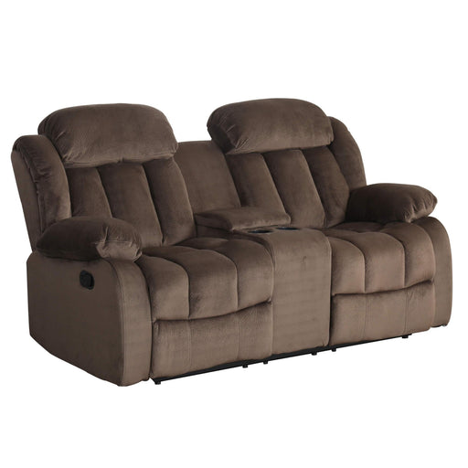 Sunset Trading Teddy Bear Reclining Loveseat with Console Storage, Cupholders | Two Manual Recliners | Brown Fabric