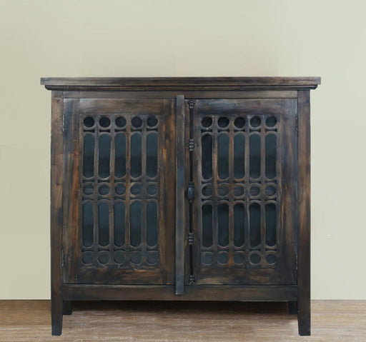 Sunset Trading Cottage 39" Carved 2 Door Cabinet | Distressed Vintage Brown Solid Wood | Fully Assembled Accent Cupboard