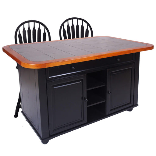 Sunset Trading 3 Piece Antique Black Kitchen Island Set | Gray Tile Top