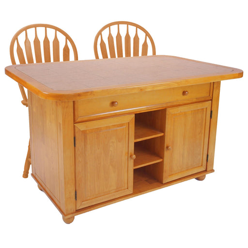 Sunset Trading 3 Piece Light Oak Kitchen Island Set | Terracotta Rose Tile Top
