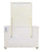 Stroll on the boardwalk, relax in the sand, coastal living will be in reach when you start and end your day surrounded by Sunset Trading’s bedroom collection, Ice Cream At The Beach. Vertical planks, replicating shiplap wainscot, combined with horizontal closed shutter doors, will wrap your bedroom with cozy country cottage charm. Contemporary lines united with authentic seagrass baskets, beadboard panel, traditional turned ball feet and finials create transitional farmhouse and island appeal. The off-white finish feels as good as it looks, durable yet smooth to the touch.