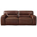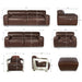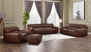 Sleek, chic, contemporary and unique! The simple rustic design of Sunset Trading Milan All Leather Living Room Collection will add sink-in comfort and style to update your home or office. Clean lines, broad padded track arms, tufted back, recessed feet and flattering flange edging set this collection apart from the rest. Seat and back suspension provide long-lasting comfort maintaining the modern silhouette. Deep memory foam and down seating make this set as comfortable as a bed, ideal for those long afternoon naps. Completely covered in a thick top grain brown leather, hand rubbing brings out the rich color and depth, making this the best leather furniture available.