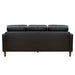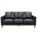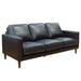 Finally, a contemporary sofa that is comfortable. Sleek top grain leather couch with a streamlined look to update your apartment, living room or office. Scandinavian design that will withstand daily wear and the test of time. Iconic mid-century modern splayed wood legs offer high clearance to make small spaces look open and airy, while the low back makes this a great option for floating in the middle of a room. Modern track arms are ideal for condo size furniture settings and tuck neatly into corners, providing support for your accent pillows to sit upright or bolster pillows to snuggle with. Matching loveseat and chair available to tailor your space to your taste.