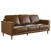 Sunset Trading Prelude 79" Wide Top Grain Leather Sofa | Chestnut Brown | Mid Century Modern 3 Seater Couch