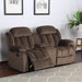 Sunset Trading Teddy Bear Reclining Loveseat with Console Storage, Cupholders | Two Manual Recliners | Brown Fabric