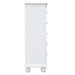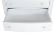 Quality is in the detail and just a click away to bring luxury resort beach house style home and enjoy every day. Fresh crisp contemporary white invigorates your mornings and at night, soft subtle lighting will enhance the splendor of this transitional chest of drawers to accessorize your master suite, kids room or nursery. This vertical dresser with universal appeal will lighten the vibe in any room, six spacious drawers roll out on heavy duty metal glides to provide ample storage with felt lined top drawers for jewelry or your finer possessions. Sunset Trading White Shutter Wood configurable furniture collection offers louvered panel beds, armoire, double dresser, mirror, tall pantry cabinet, room divider and two different size nightstands available separately to make all your coastal living home decorating ideas come to life.